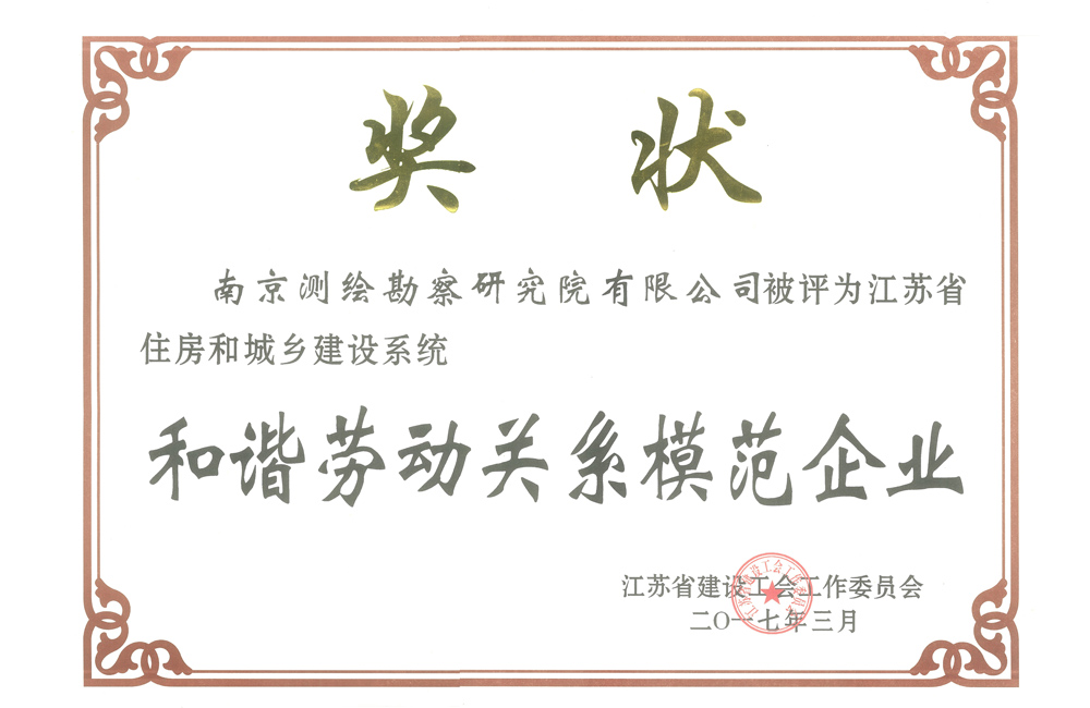 江蘇省住房和城鄉(xiāng)建設(shè)系統(tǒng)和諧勞動關(guān)系模范企業(yè)
